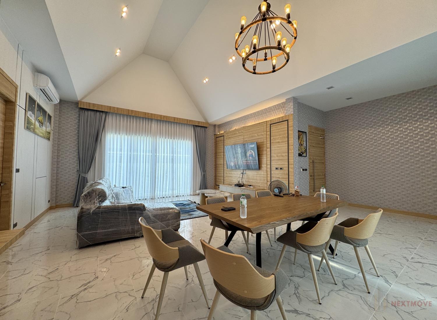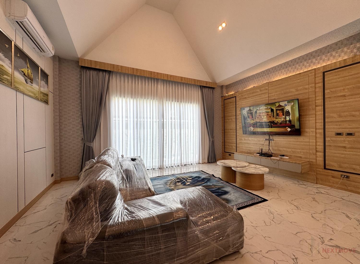 The gated community emphasizes both privacy and security, with 24-hour surveillance and CCTV. Residents benefit from smart home systems, private parking, and a resort-like atmosphere. Ideally situated in peaceful Huai Yai, just 20 minutes from Jomtien Beach, the location offers convenient access to international schools, golf courses, local markets, and other lifestyle amenities—making it perfect for families, retirees, or working professionals.