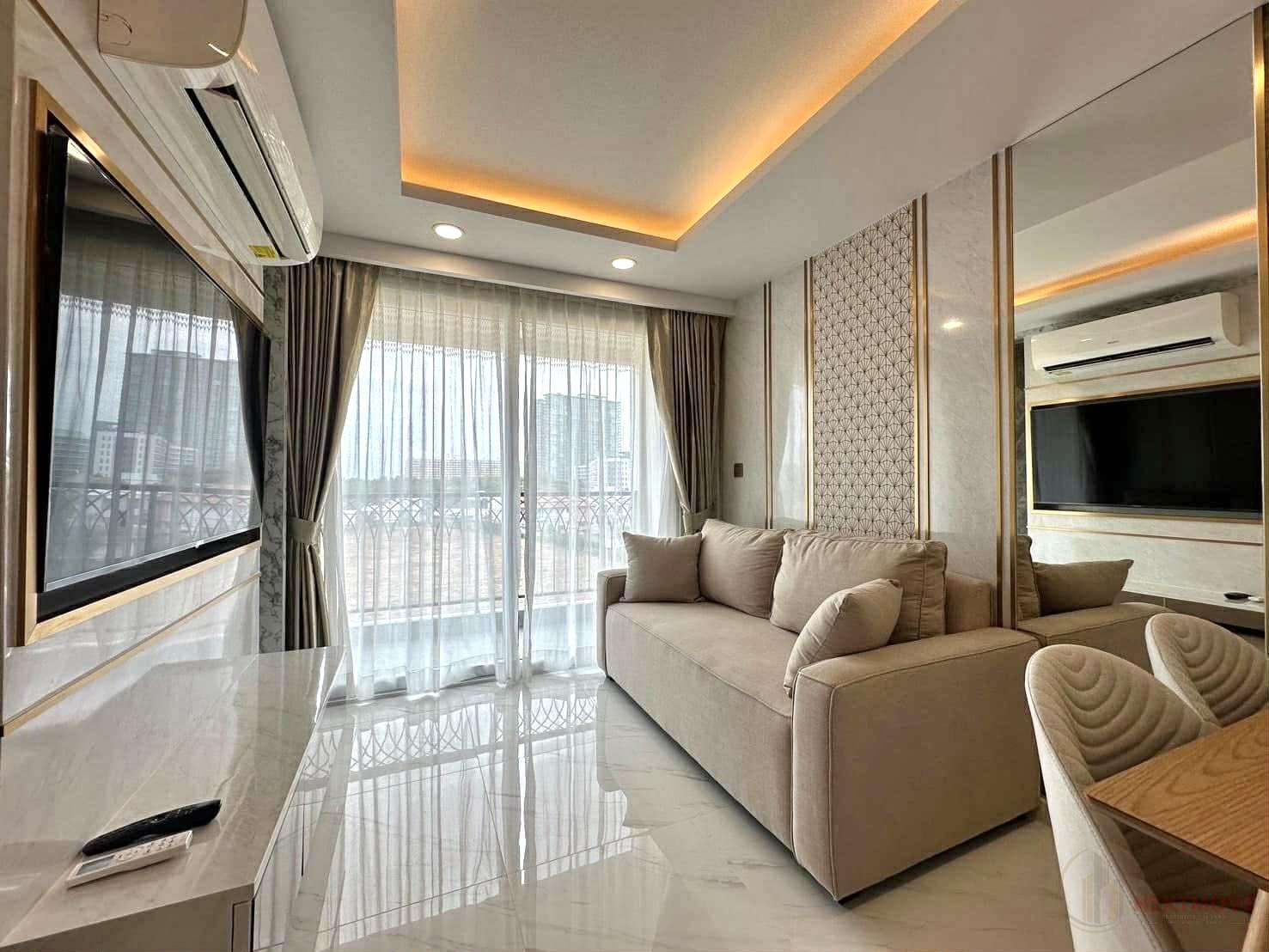 Dusit Grand Park 2 is a contemporary low-rise condominium in North Jomtien, Pattaya, developed by Dusit Group. Completed in 2022, the project consists of 5 buildings over 8 floors with 919 units, offering a blend of comfort and convenience. Residents enjoy resort-style amenities including a lagoon-style swimming pool, fitness center, sauna, jacuzzi, landscaped gardens, and secure parking. The development is within easy reach of Jomtien Beach, shops, and local attractions, providing a relaxing yet connected lifestyle. The community features 24-hour security and CCTV, ensuring peace of mind for all residents.