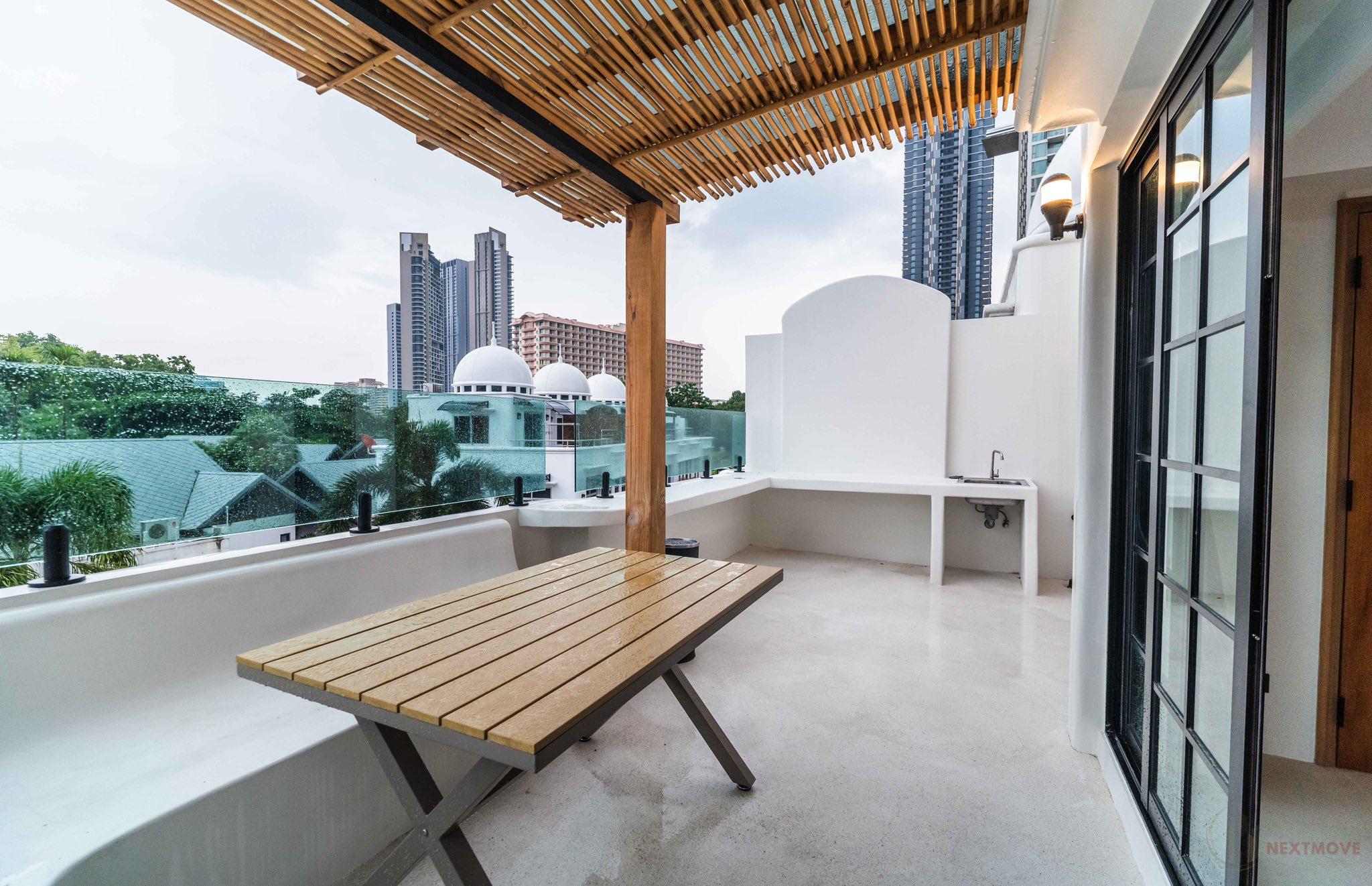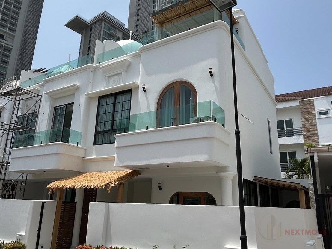 This elegant beachside residence offers a refined living experience just steps away from Wongamat Beach. Designed with modern interiors and fully furnished, the home combines comfort with style, creating a warm and inviting atmosphere. A private rooftop terrace provides an exclusive space to relax, entertain, or enjoy panoramic views of the surrounding area. The residence is complemented by high-speed internet and quality finishes, ensuring both convenience and practicality. Located in one of Pattaya’s most desirable neighborhoods, the property provides easy access to fine dining, shopping, and leisure options, while maintaining a sense of privacy and tranquility. Perfect for those seeking a coastal lifestyle with modern amenities.
